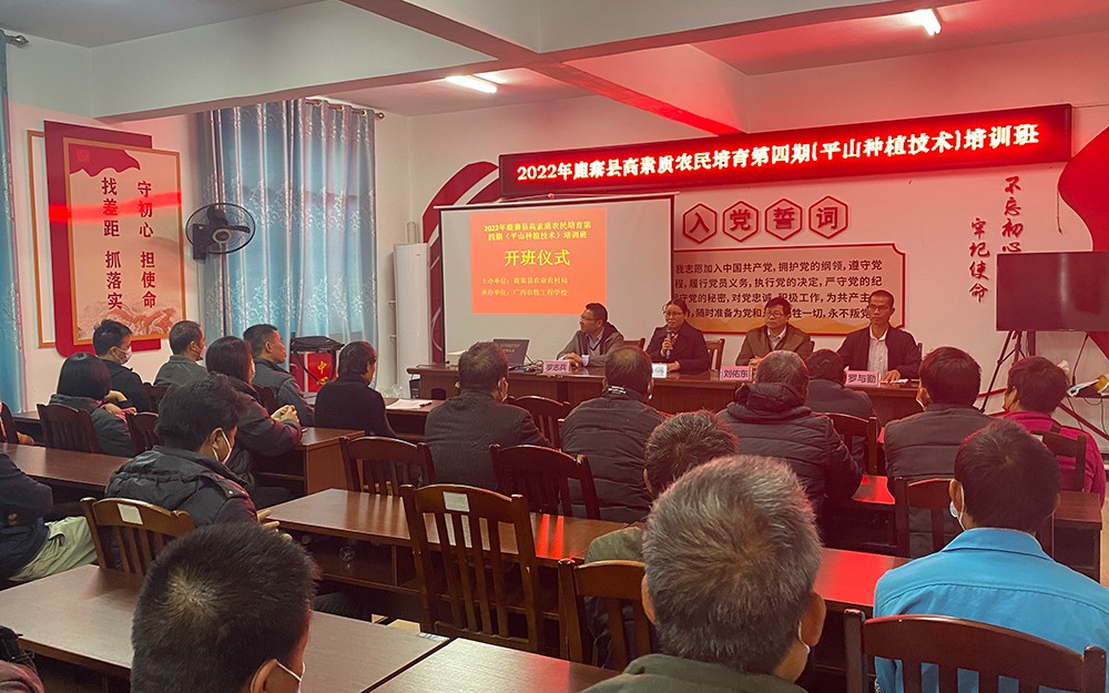 2022年12月10日,鹿寨县2022高素质农民培育第四期(平山种植技术)培训班在鹿寨县平山镇镇顺利结业。本期培训为期6天,学员分别来自鹿寨县的平山镇平山社区附近村民。