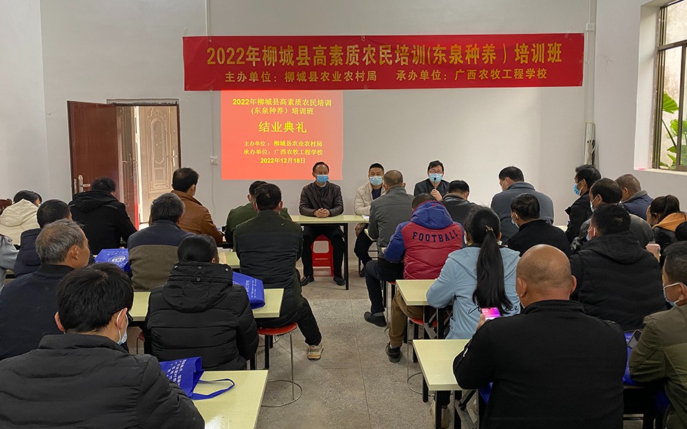 为了加快培育高素质农民经营主体,进一步促进农业增效、农民增收,为乡村振兴战略、发展现代农业提供人才支撑,我校于11月23日至11月26日和12月11日至12月18日在柳州市柳城县东泉镇举办2022年柳城县高素质农民培训(东泉种养)培训班,来自大樟村,对河村,高田村,尖石村,雷塘村,凉亭村,螺田村,青山村,西安村,走马村等村屯的67名学员积极参加了此次培训。