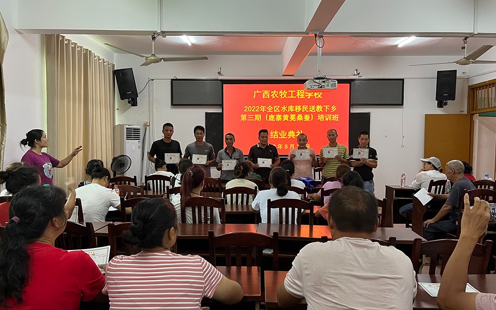 本次培训,我校领导高度重视,根据水库移民的文化程度、产业情况和培训要求,加强现场教学的培训思路。每天由资深专家授课,精心设置了畜禽养殖、养蚕技术、蚕病防治等专业课程进行详细讲解。培训期间,带领学员前往宜州桑蚕产业示范基地进行参观学习。