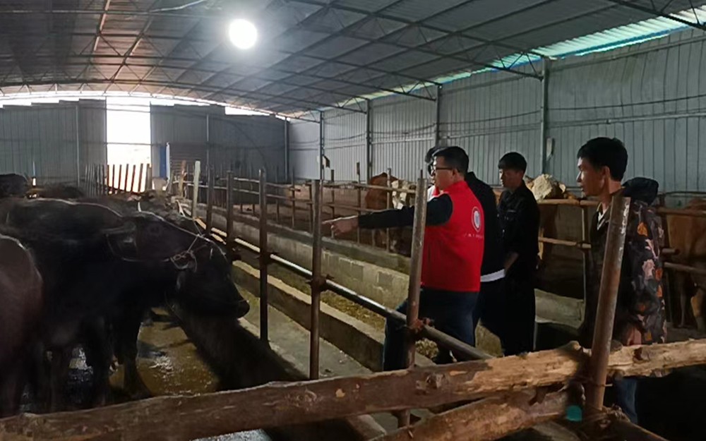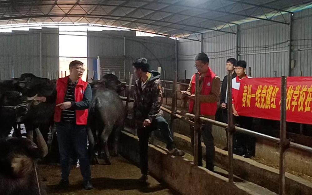 当日,我校科技特派员刘佑东率队带领罗龙兴老师及3名学生赴柳州市柳北区沙塘镇江湾村委会陆种群养殖牛基地实地指导肉牛春季生产管理、常见疫病防控等技术,提出生态养殖及粪污无害化处理建议,为进一步推动牛产业健康、安全、高效养殖提供技术支撑。