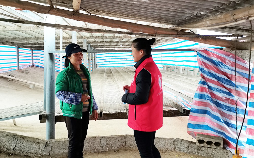 广西科技特派员龚筱丽在给养殖户进行防寒措施指导