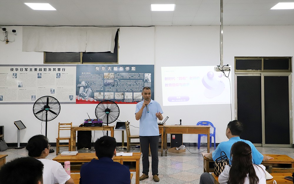 上午,青年教职工抵达崖山休闲农庄后,首先开展“新时代‘四有’老师的教育信仰与追求”素质团建活动。专家围绕“四有”好老师的理想信念、道德情操、扎实学识、仁爱之心四大维度,结合职业教育改革趋势,深入浅出地阐述了新时代教师的责任与使命,引导青年教职工厚植“六农情怀”,树立服务“三农”、助力乡村振兴的职业理想。