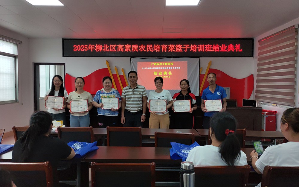 2025年5月19日,由柳州市柳北区农业农村局主办,我校承办的“2025年柳北区高素质农民培育菜篮子培训班”顺利结业。本次培训共有30名学员积极参与,旨在提升农户种植技术与管理能力,助力乡村振兴。