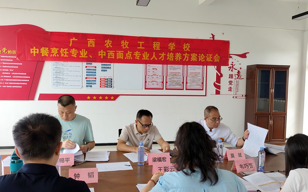 为深入贯彻落实国家职业教育改革实施方案,推动烹饪专业群高质量发展 ,2025年6月3日下午,我校召开中餐烹饪专业、中西面点专业人才培养方案专家论证会。会议特邀广西商业学校烹饪工艺与营养专业负责人梁福宏、柳州市人才集团有限公司行政总厨莫斌、柳州市延安大酒店行政总厨汪锡平等三位专家莅临指导。