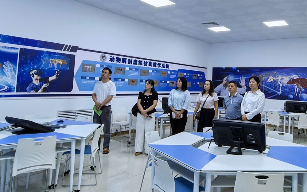 课程建设团队代表参观了陕西农林职业技术大学动物工程学院实训基地。动物标本馆内,分类陈列动物标本,形成了系统且科学的展示体系;虚拟仿真实训室内,动物解剖教学系统以沉浸式交互体验打破传统教学;宠物护理与美容教学区,模拟真实职场环境,配备先进设施设备,充分展现“教学做一体化”。