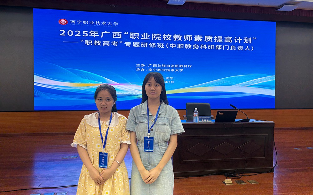 为深入贯彻职教高考政策,提升教师对职教高考的理解与教学实践能力,2025年7月4日至10日,学校选派教师参加由广西壮族自治区教育厅主办、南宁职业技术大学承办的2025年广西职业院校教师素质提高计划—“职教高考”专题研修。