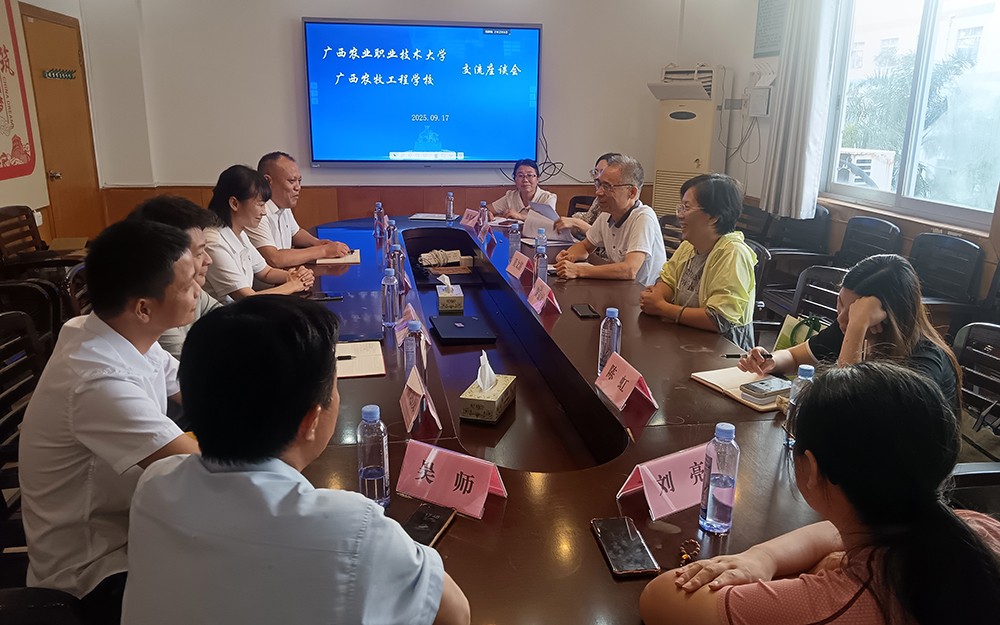 2025年9月17日下午,广西农业职业技术大学动物科技学院莫文湛科长一行四人莅临我校教学点指导交流,并专程为2025级新生开展专业入学教育。我校畜牧兽医专业部主任罗鸣陪同参与了本次活动。