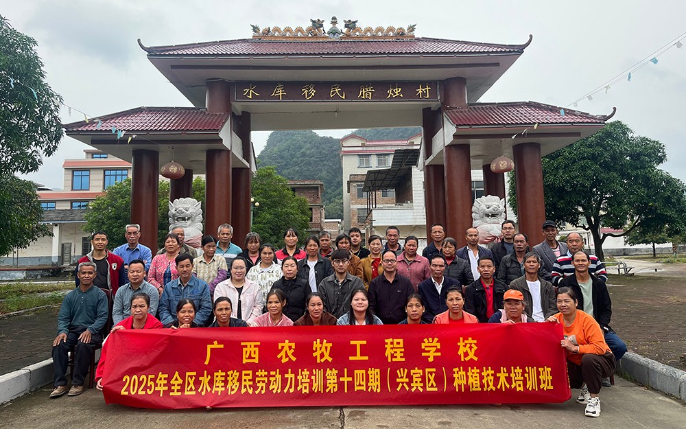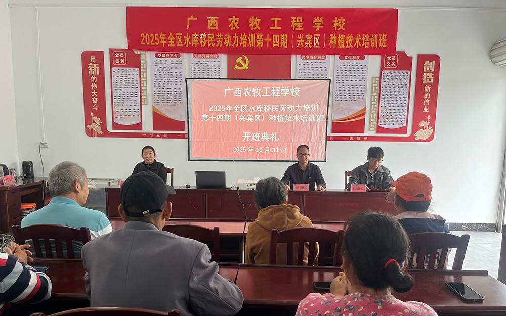 10月31日,学校在来宾市兴宾区五山镇联兴村举行2025年全区水库移民劳动力培训第十四期(兴宾区)种植技术培训班开班仪式。此次培训由兴宾区水库移民工作管理局主办,广西农牧工程学校承办,旨在全面推进乡村振兴战略实施和现代农业产业发展,提升库区移民的专业能力。学校继续教育部副主任周海江、兴宾区水库移民工作管理局相关负责人以及培训班全体学员50人参加开班仪式。
