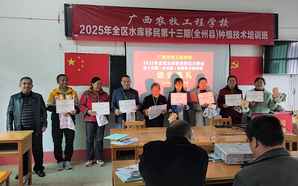 11月4日,为提升库区移民的农业种植技术水平,助力龙田村柑橘产业发展和乡村振兴。由学校承办的2025年全区水库移民第十三期(全州县)种植技术培训班圆满结束。特遴选出50名产业带头人,参加了此次为期7天的柑橘种植培训。