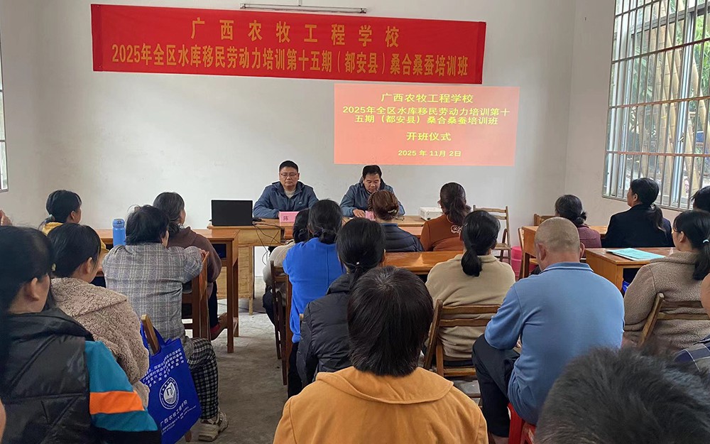 为帮助水库移民掌握农业生产实用技术,提升库区移民的自我发展能力和发家致富本领,广西农牧工程学校于2025年11月2日举办了“2025年水库移民劳动力培训送第十五期(都安县)桑合桑蚕培训班”,来自都安县桑合移民安置点和江洒安置移民点的35位水库移民(学员)参加了此次培训。本次培训从农民产业发展需求出发,及时解决群众急难愁盼问题,科技送下乡,助力乡村振兴