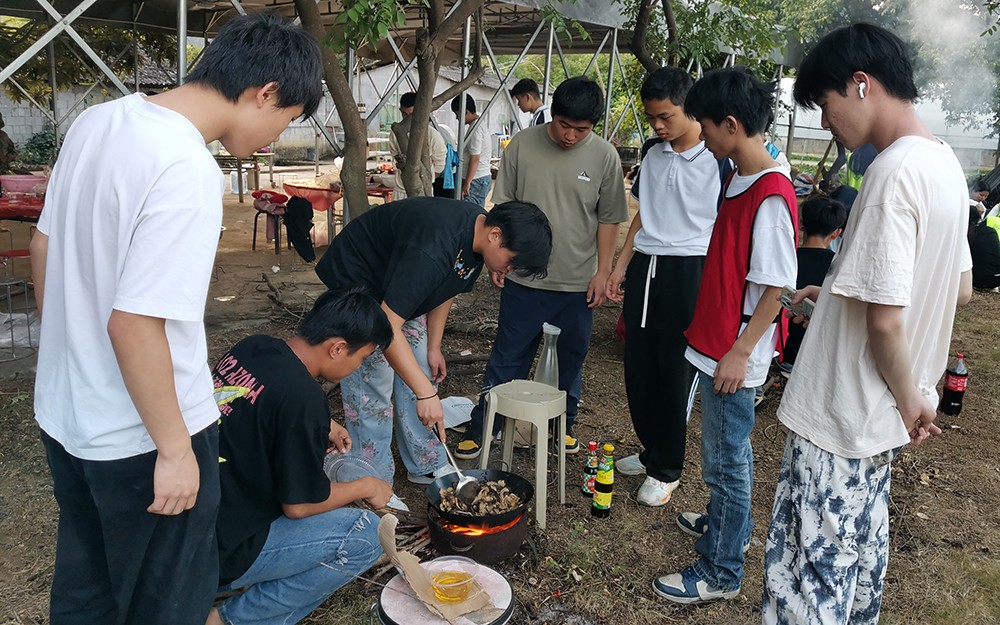 夜幕降临,同学们化身“美食达人”,分工处理食材、搭建简易炊具、生火烹饪。洗菜、切菜、调味、翻炒,大家各司其职,忙得不亦乐乎。虽然烹饪条件有限,但大家齐心协力,一道道充满烟火气的菜肴陆续出锅。围坐在一起分享自己亲手制作的晚餐,同学们脸上洋溢着满足的笑容,不仅品尝到了美食的滋味,更体会到了劳动的快乐与收获的喜悦。