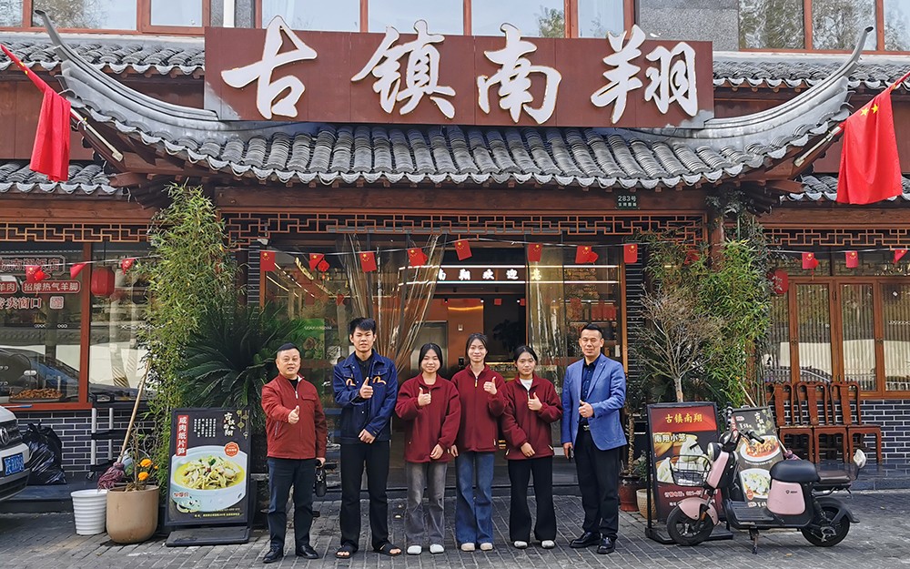 上海古镇南翔家常菜馆实习学生与检查老师合影