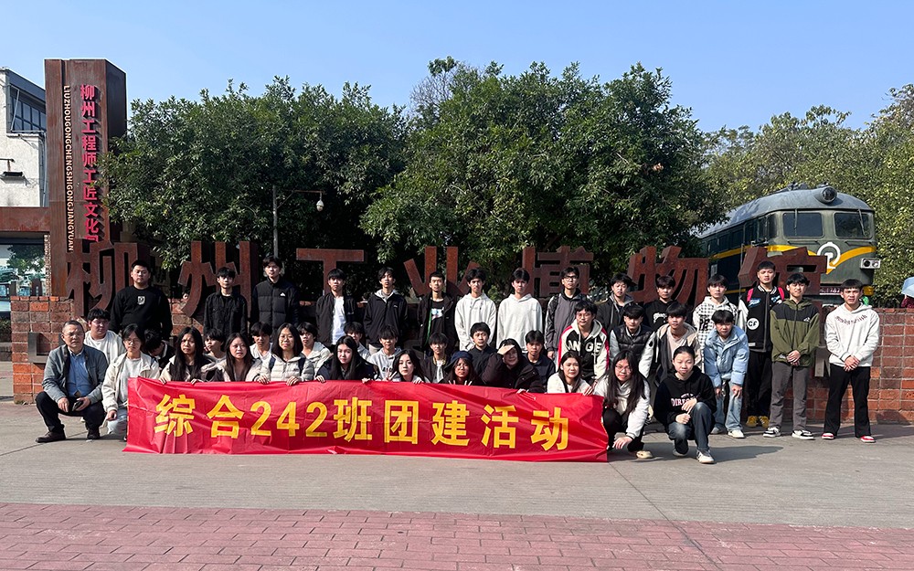 参观尾声,全班在博物馆合影留念。横幅上“综合242班团建活动”与背景中“柳州工程师工匠文化”的标识交相辉映,定格了这场工业文化之旅的深刻意义。老师在总结中强调:“柳州工业的崛起,是‘实业报国’精神的生动注脚。希望同学们以史为鉴,将个人成长与乡村振兴、新型工业化紧密结合,争做‘六农情怀’的践行者。”此次研学活动是推进“产教融合+文化育人”的重要实践。通过实地探访工业遗产,学生们不仅拓宽了视野,更坚定了“技能成才、强国有我”的信念。