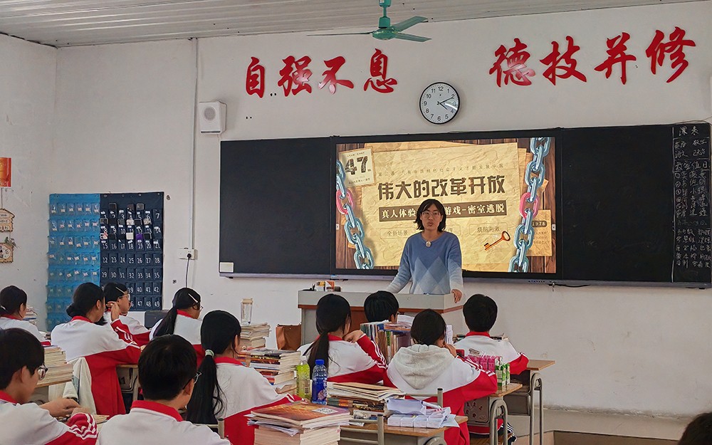 本次课程聚焦“只有社会主义才能发展中国”核心主题,打破传统课堂模式,将“密室逃脱”游戏与教学内容深度融合。课前,学生通过教材勾画预习,明确改革开放的进程与意义;课中,老师以“1977年中国何去何从”为情景切入点,引导学生分组破解“密码线索”——从找出党的十一届三中全会的历史意义,到按时间轴排序家庭联产承包责任制、经济特区设立等关键事件,再到通过动态地图直观理解“全方位、多层次、宽领域”的对外开放格局。