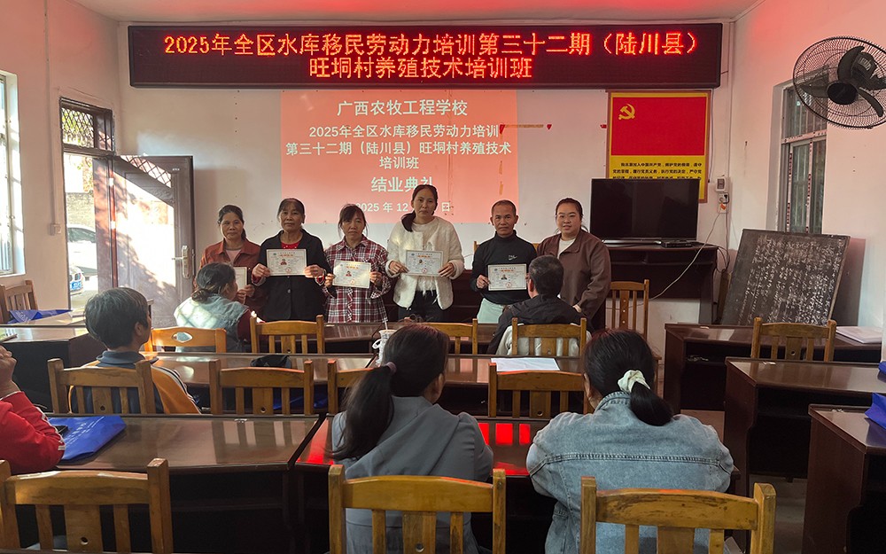 12月13日,2025年全区水库移民劳动力培训第三十二期养殖技术培训班在陆川县旺垌村成功举办,来自旺垌村的50名水库移民学员齐聚一堂,系统学习养殖实用技能,为实现“搬得出、稳得住、能致富”的目标筑牢技能根基。