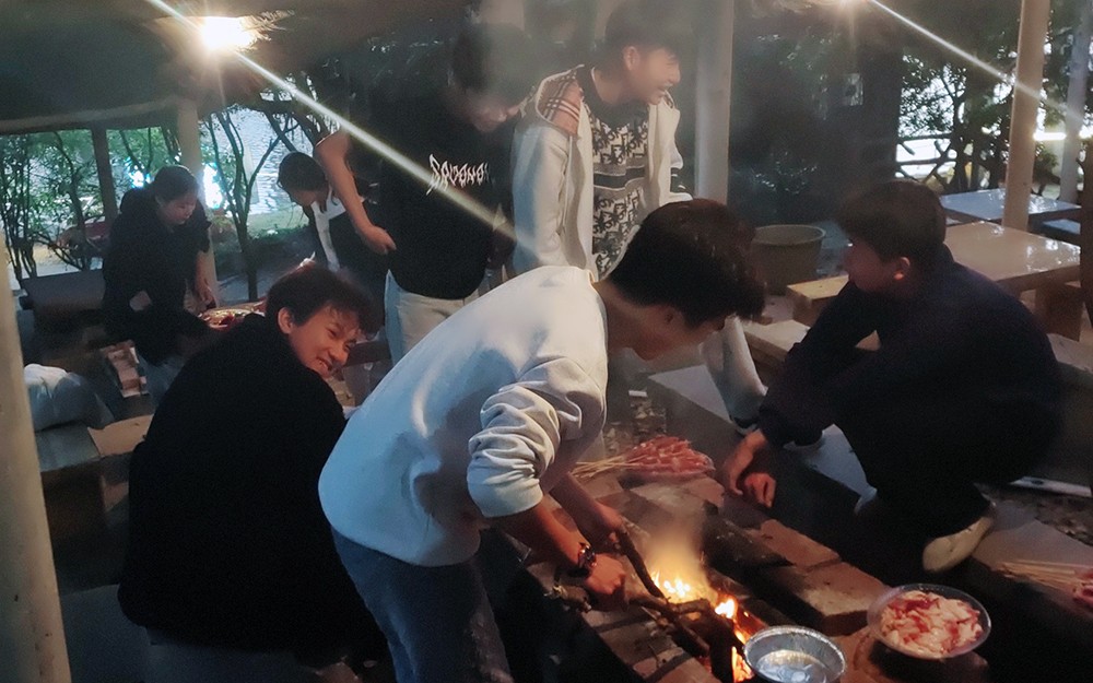 傍晚时分,夕阳的余晖为生态园披上了一层温暖的金色。同学们陆续抵达,园内清新的空气与阵阵欢声笑语瞬间融为一体。活动伊始,班委成员们已提前准备好了丰富的烧烤食材、饮料以及各类娱乐设施。大家迅速分工协作,有的负责生火,有的忙着串制食物,有的布置场地,现场气氛迅速升温。