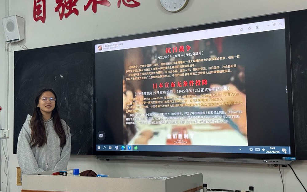 此次主题视频创作,学生们在老师的指导下,分组深入挖掘抗战时期各地红色故事、经典历史事件与英雄人物事迹,全程自主参与、用心打磨。各小组的视频中,既有对革命先烈抛头颅、洒热血英勇壮举的深情追忆,也有对当下青年传承抗战精神、勇担时代使命的坚定表态,每一幕画面,都承载着对历史的敬畏;每一句告白,都饱含着青春的担当。