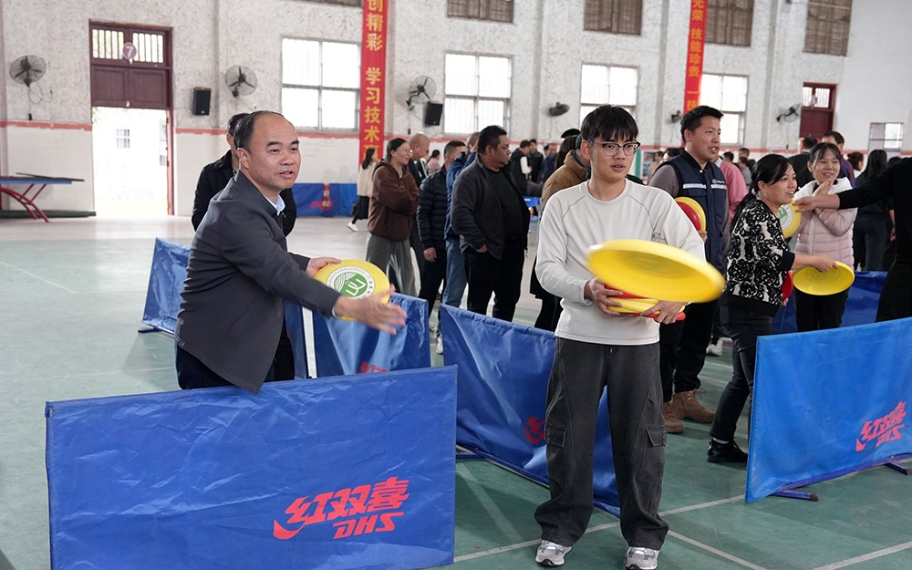 “筷子夹球”项目中,队员们屏息凝神、默契操控特制长筷,小心翼翼地将球运送至目标圈内。时而因球滑落引发阵阵欢笑,时而又因默契传递赢得全场掌声。“背传沙包”环节考验着队员之间的信任与配合,前方队员背身将沙包过头传向后方,后方队员稳稳接应,每一次成功交接都伴随着团队的欢呼与鼓舞。“飞盘入框”区域,选手们凝神瞄准、挥臂投掷,飞盘在空中划出优美弧线,精准入框的精彩瞬间将现场气氛推向高潮。而“螃蟹赛跑”则充满欢声笑语,队员们套着呼啦圈侧身疾走,姿态诙谐又全情投入,充分释放了平日工作的压力。