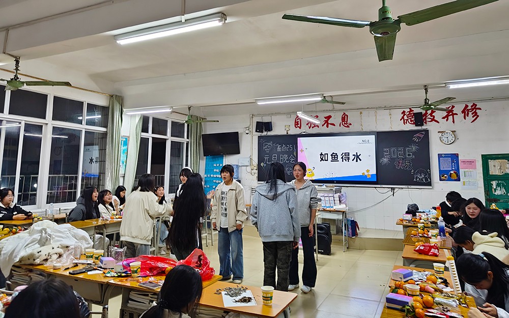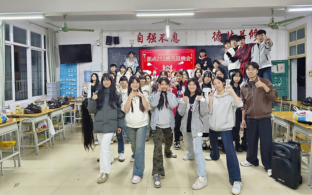 为喜迎元旦佳节,凝聚班级向心力,展现面点专业学子的青春风采,12月30日晚,面点251班“匠心筑梦·喜迎新年”主题元旦晚会在班级教室温馨启幕。全体同学欢聚一堂,用歌声、舞蹈与欢声笑语告别过往,以热忱与期待迎接崭新一年。