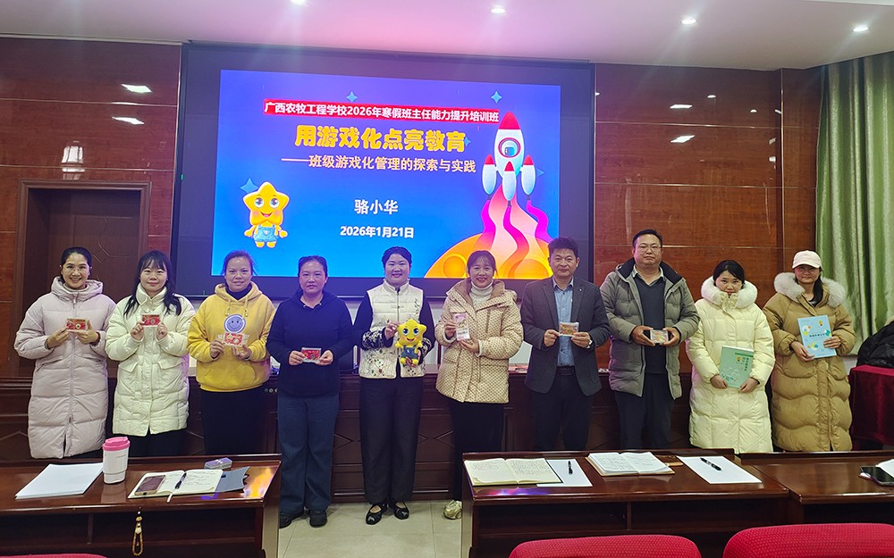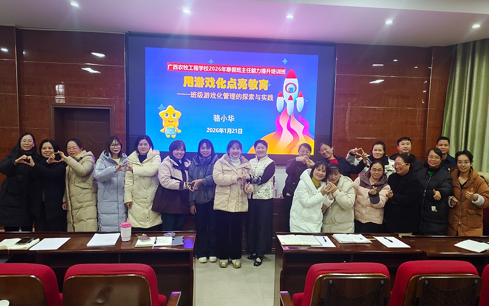 为进一步加强班主任队伍建设,提升班主任育人能力和专业素养,2026年1月21日,由学生科主办、韦碧云名班主任工作室承办的寒假班主任专题培训在学校阶梯教室成功举办。本次培训由学生科科长何程主持,培训聚焦班主任专业发展的核心需求,围绕“德育科研”与“教育创新”两大主题展开,通过理论与实践相结合的方式,为全体班主任带来了一场富有深度与创意的学习盛宴。