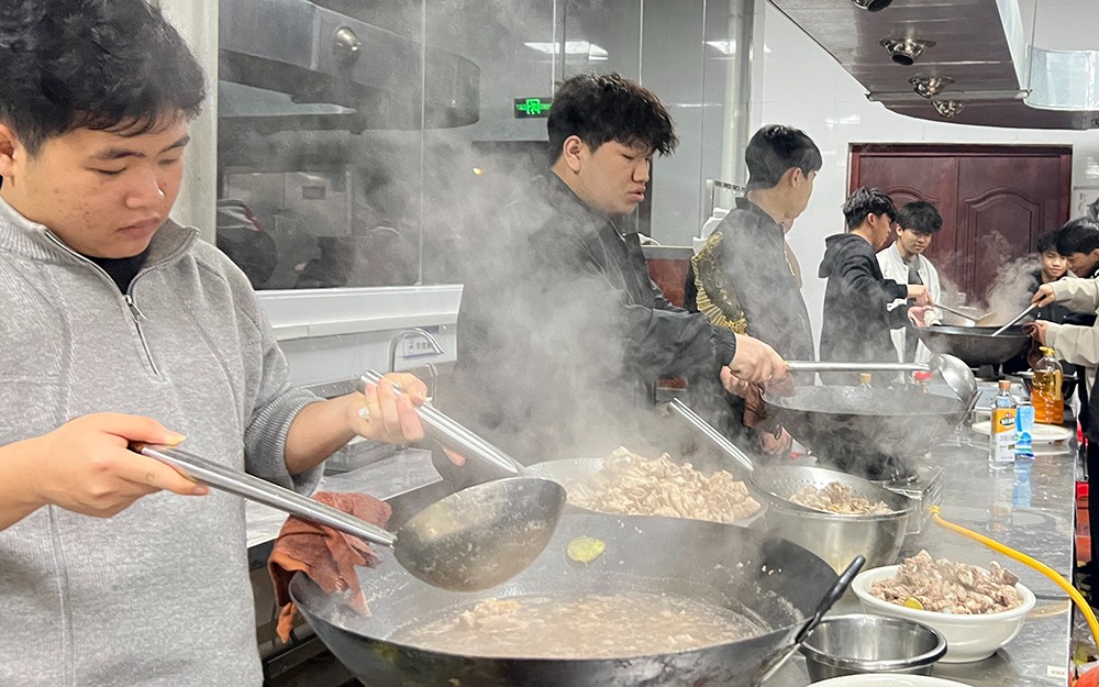 烹饪253学生展示烹饪技术