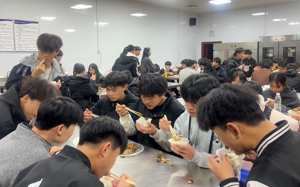 另一边,旅游251班的同学们则以专业服务标准,扛起了元宵核心环节的重任。从汤圆的下锅煮制到分装摆盘,大家分工协作、有条不紊。烧水、下汤圆、轻轻搅拌防止粘连,每一个步骤都细致入微;待汤圆浮起、软糯香甜时,同学们将其盛入精致的碗碟中,搭配暖心的问候,逐一送到烹饪班同学和现场老师手中。他们规范的服务流程、亲切的微笑礼仪,完美诠释了旅游服务专业的职业素养,成为实训基地里一道温暖的风景线。