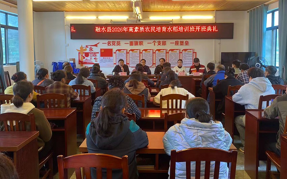 3月24日,2026年融水县高素质农民培育水稻培训班在培地村委会议室正式开班。来自培地村的50名水稻种植户参加培训。