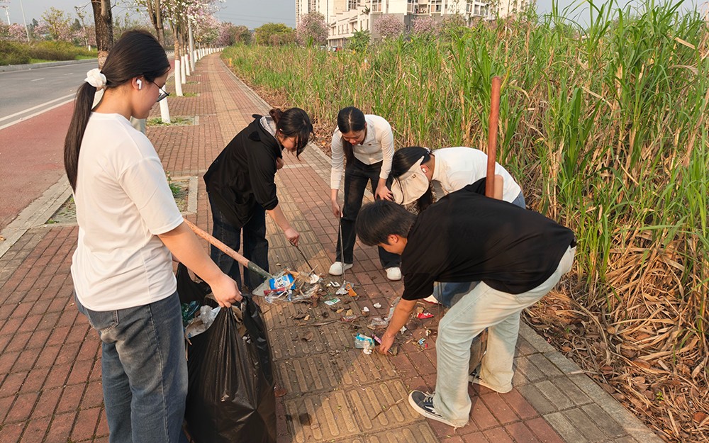 在社区工作人员的细致安排下,同学们迅速分工,手持扫帚、簸箕、垃圾夹等清洁工具,有序投入清扫工作。大家不怕脏、不怕累,弯腰捡拾绿化带深处的白色垃圾,细致擦拭布满灰尘的宣传栏与健身器材,认真清扫主干道上的落叶与纸屑,不放过任何一处卫生死角。同学们分工协作、配合默契,青春的身影穿梭在社区各个角落,汗水浸湿衣角却依旧笑容明媚,成为春日里社区最靓丽、最温暖的风景线,他们的辛勤付出,赢得了过往居民连连称赞。