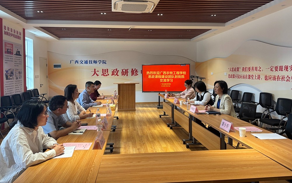 3月25日,学校思政课程建设团队一行5人赴广西交通技师学院学习调研。此次调研聚焦思政在线精品课程建设、思政教学资源库搭建、教师技能大赛课堂教学比赛等方面的经验与做法。