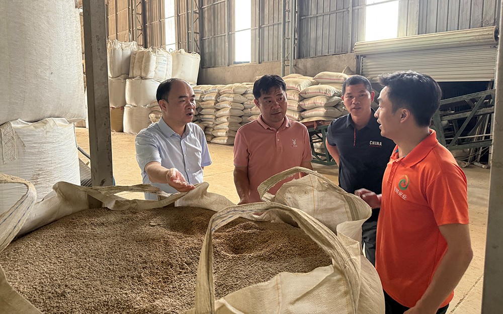 邱少清校长在水稻加工中心考察