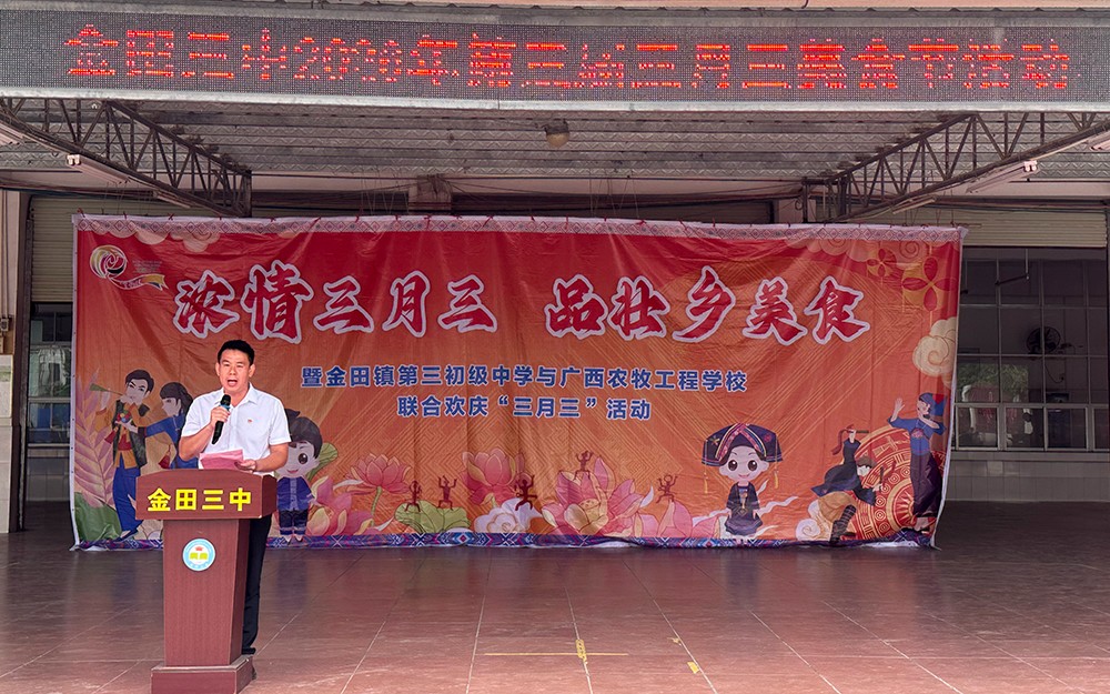 职教春风劲,匠心育英才。在壮族三月三这一民族传统节日来临之际,我校将职业教育实训搬进垌心乡初级中学、金田镇第三初级中学,以沉浸式美食技能展演、互动式实训体验,为两所学校师生带来一场别开生面的“职教公开课”,用鲜活实践展现职业教育服务地方、赋能成长的独特魅力,推动职业教育与普通教育深度融通,助力地方文化传承与技能普及。