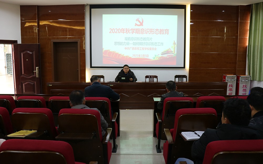 为进一步理解意识形态工作,做好意识形态工作,1月5日,我校在阶梯教室组织全体教职工观看学习教育宣传片《思想的力量—如何做好意识形态工作》。