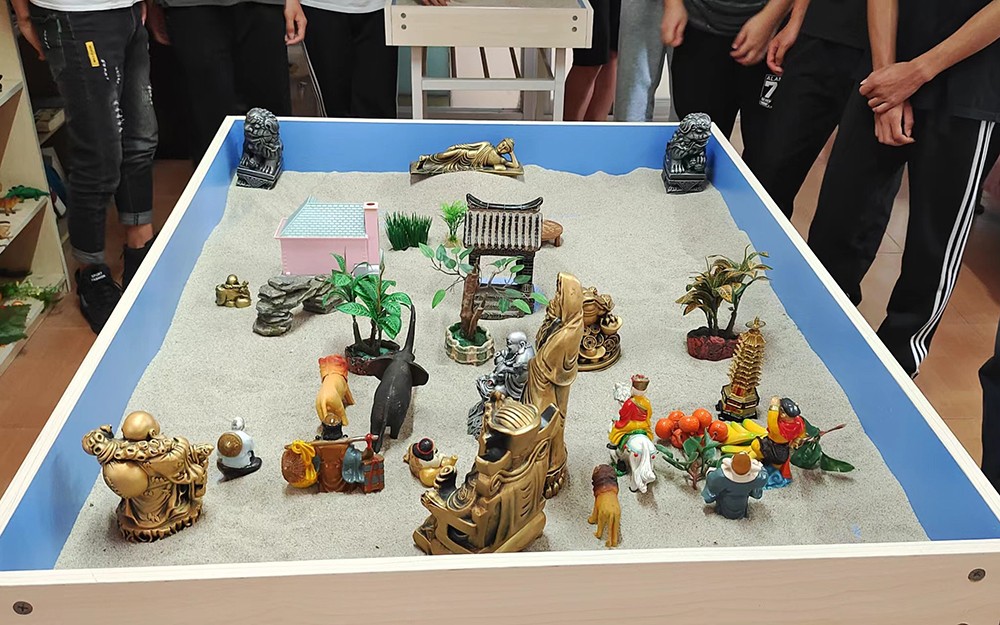 教师将团体辅导活动应用到课堂当中,不同课程主题采用不同的活动形式,既能提起学生对《心理健康》课程的兴趣,又能在系统的团辅教学中发现班级整体特点,调整对不同班级的授课内容、方式,有针对性疏导。本学期团辅课程,通过素质拓展户外活动,增加班级团队凝聚力,让学生们获得团体归属感,提高自信、满足自我确认的需求;通过团体沙盘,既能宣泄自我情绪,又能让学生了解规则约束、选择表达和自由,有利于处理心理危机、改善人际交往能力;通过放松训练,让学生缓解紧张情绪、减轻心理压力,使头脑清晰、消除疲劳,提高晚上睡眠状态。