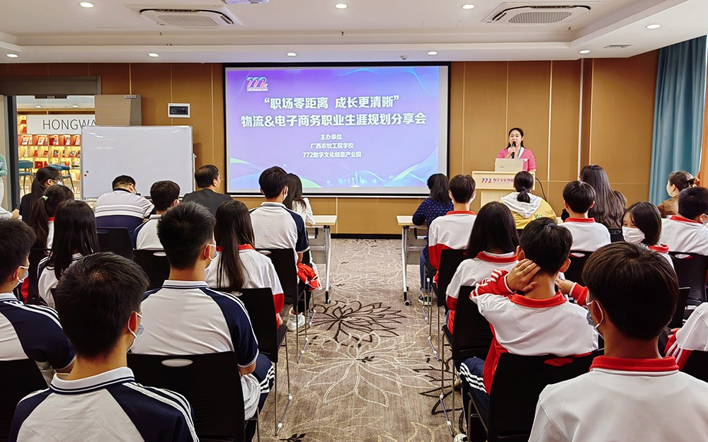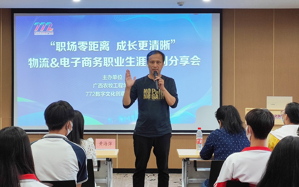 11月9日下午,我校招生就业办主任阙晓南、机电信息专业部主任张杰华带领60余名电子商务、物流服务与管理专业师生到柳州772数字文化创意产业园开展职业生涯规划专题培训。