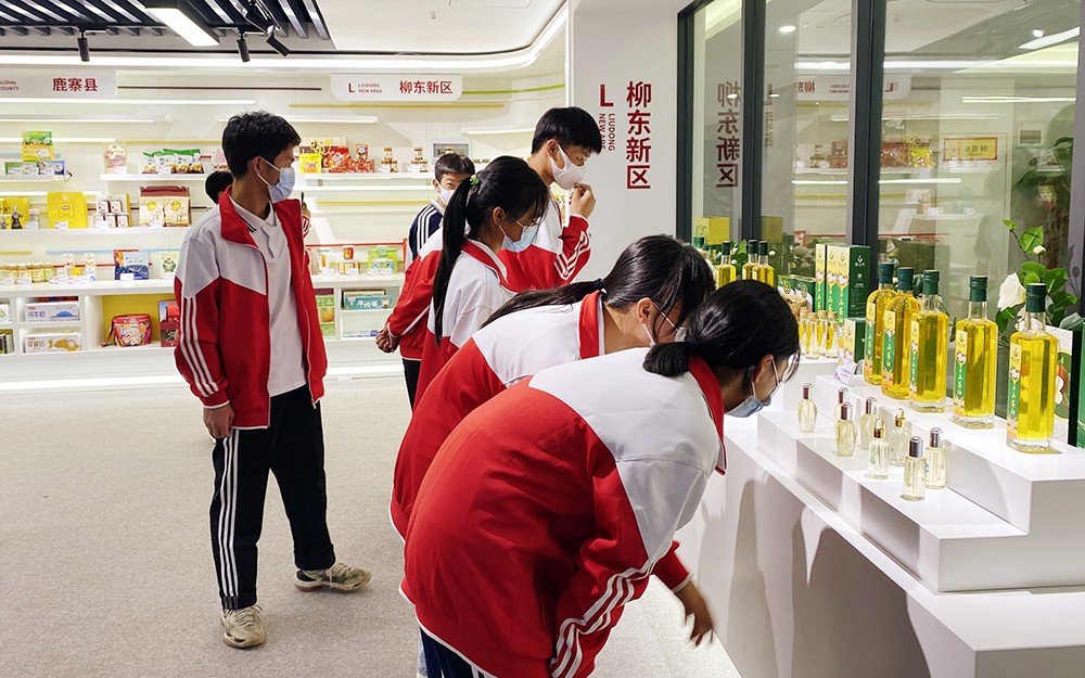在体验活动环节,全体师生参观了乡村振兴柳州好物馆、山茶油直播间,并亲自体验了一次直播带货,切身感受到新媒体、电商产业的发展前景,在参观学习中积累了专业知识。