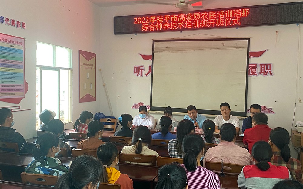为打造一支有文化、懂技术、会经营的高素质农民队伍,助力发展乡村产业经济。10月12日,桂平市2022年高素质农民培育专业稻虾综合种养技术培训班在厚禄乡开班。我校副校长瞿道航、桂平市农业农村局科教股股长王凤清、厚禄乡副乡长李丽森等领导出席了开班典礼。来自该乡稻虾综合种养能手及大户、村干等50人参加了培训。