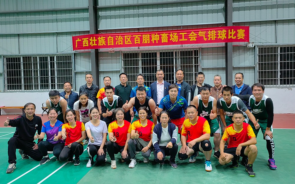 为备战柳州市教职工气排球比赛,11月24日下午,蒋漓生校长带领学校气排球男女队员等一行18人到自治区百朋种畜场跟兄弟单位职工进行友谊比赛。