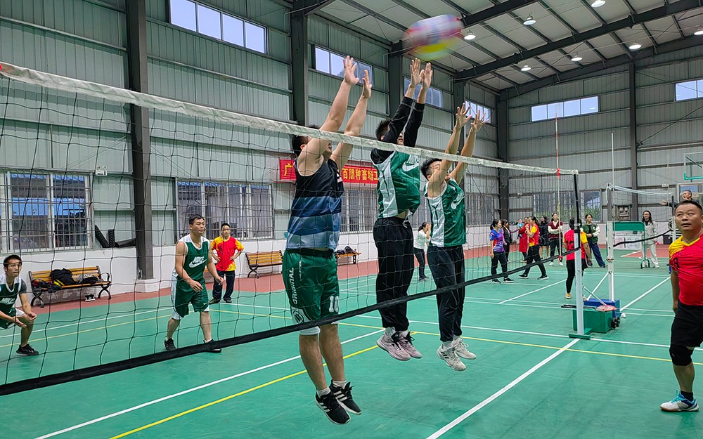 大家来到运动场上,裁判员一声哨响,大家随即进入了紧张而激烈的比赛中,跑位接球、传球、扣杀、回击等每个动作每个球都稳扎稳打,默契配合。赛场上,全体运动员赛出了风格,赛出了水平,赛出了友谊。