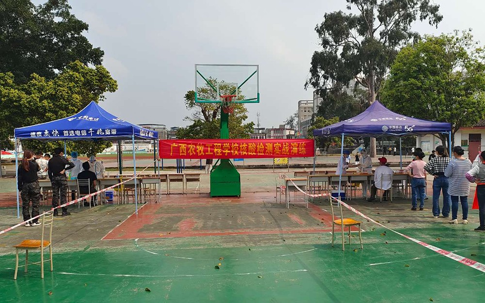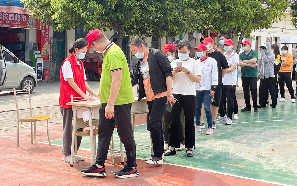 为了提升校园疫情防控应急能力,确保师生安全和校园稳定,3月19日下午,学校在校本部篮球场举行核酸检测实战演练,对教官、门岗、在校后勤人员、在医务室、隔离室工作人员进行核酸检测。学校党委书记、校长蒋漓生,副校长李芳敏,学生科科长张志强,教育教学服务中心主任廖福振现场检查指导演练工作。