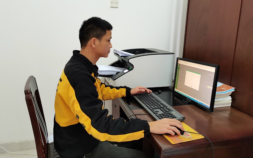 数学教研组潘达友老师正扫描答题卡