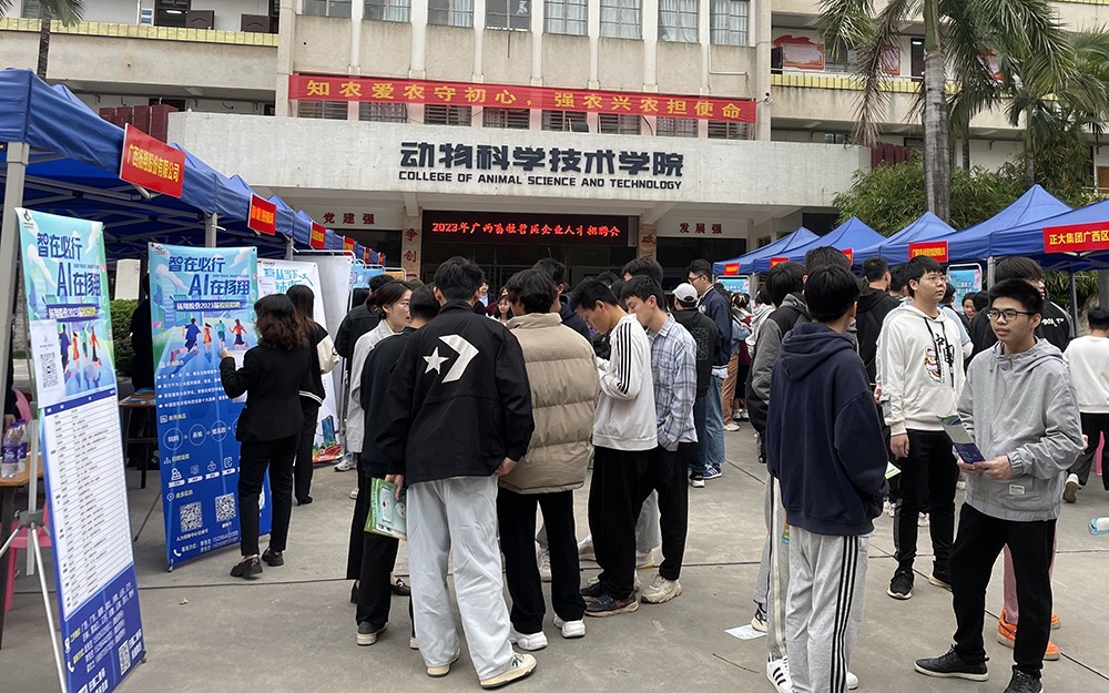 学校教师在现场了解到,此次招聘会共有正大集团、广西农垦、温氏集团、扬翔股份、力源集团、瑞鹏宠物等60余家用人单位为广西大学动科院的毕业生提供生产管理、技术服务、产品研发、市场营销等千余个就业岗位。
