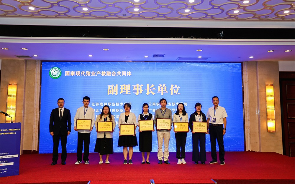 10月11-13日,由国家现代猪业产教融合共同体、中国生猪产业职业教育产学研联盟、中国博鳌高端猪业科技论坛主办,牧原食品股份有限公司、华中农业大学、重庆三峡职业学院、国家生猪技术创新中心、中国种猪信息网&猪业科学超级编辑部承办的科创中国[猪场之旅] 2023行:华南猪业发展论坛暨国家现代猪业产教融合共同体成立大会在广州市隆重举行。我校由马翠芳副校长带队一行5人参加此次会议。