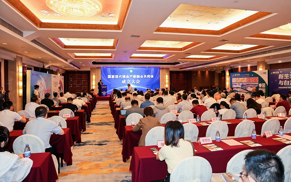 国家现代猪业产教融合共同体第一届一次理事会上,国家生猪技术创新中心副院长黄勇介绍前期筹备情况,全体理事审议共同体章程、组织机构及名单,牧原食品股份有限公司等五个发起单位代表进行了讲话。会议期间,隆重召开国家现代猪业产教融合共同体成立大会,共同体领导为我校颁授副理事长单位牌匾。