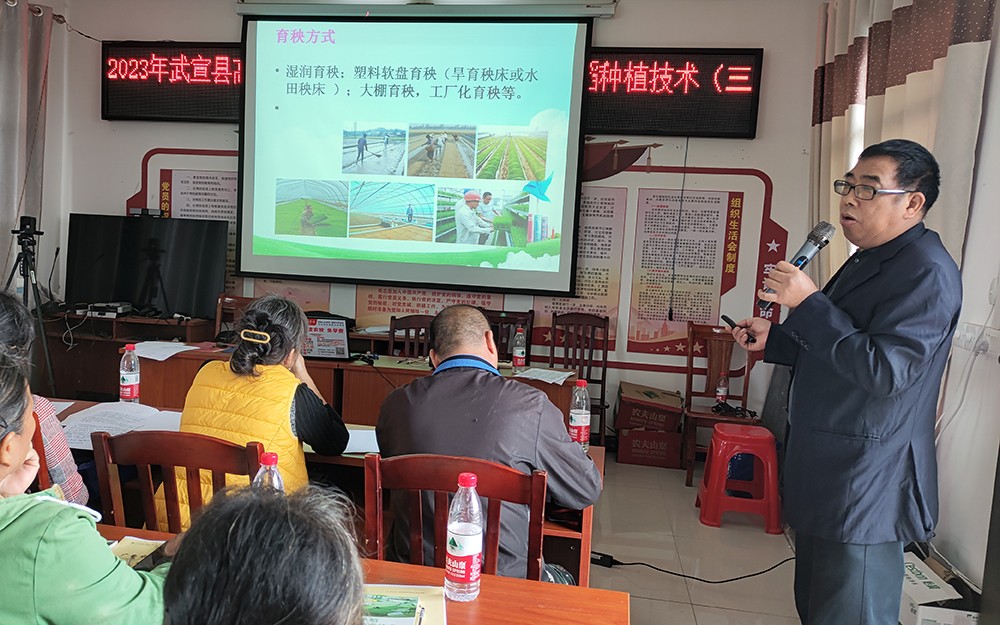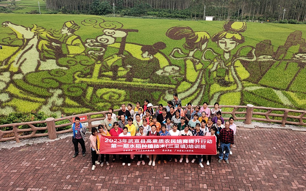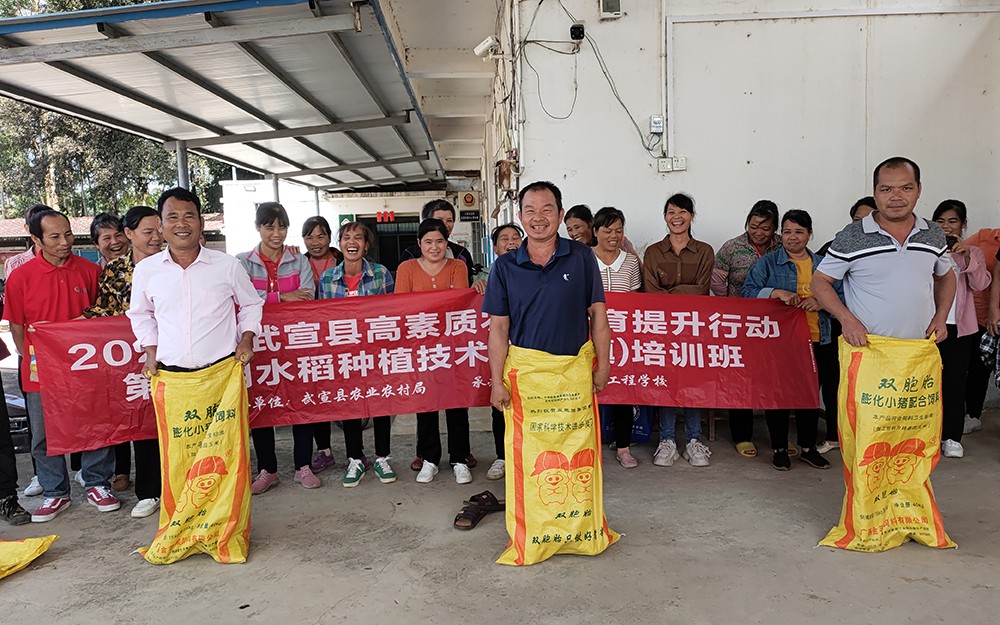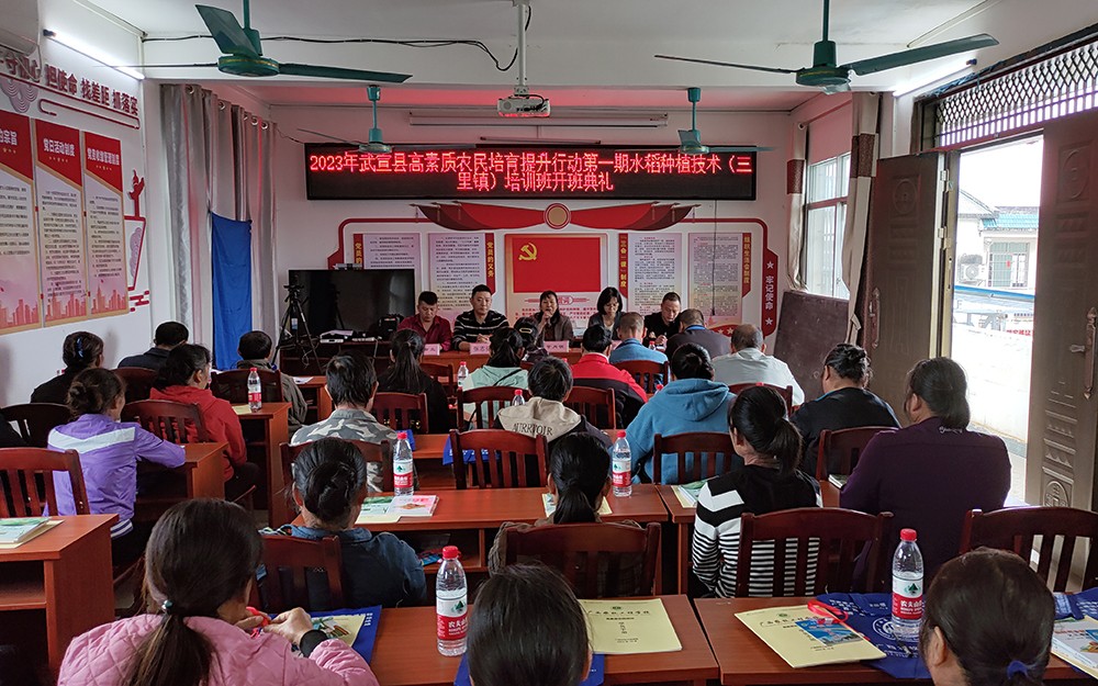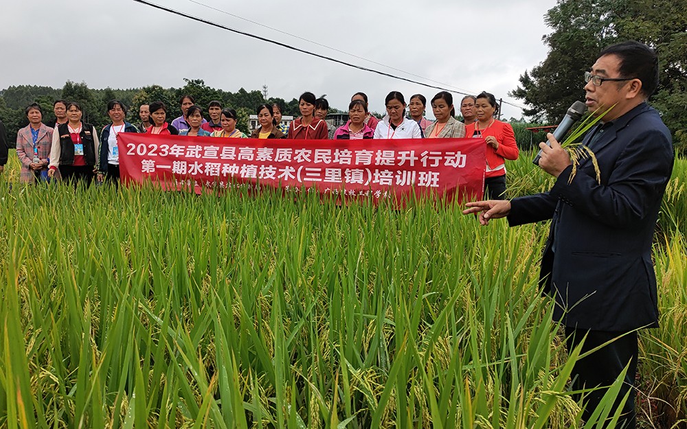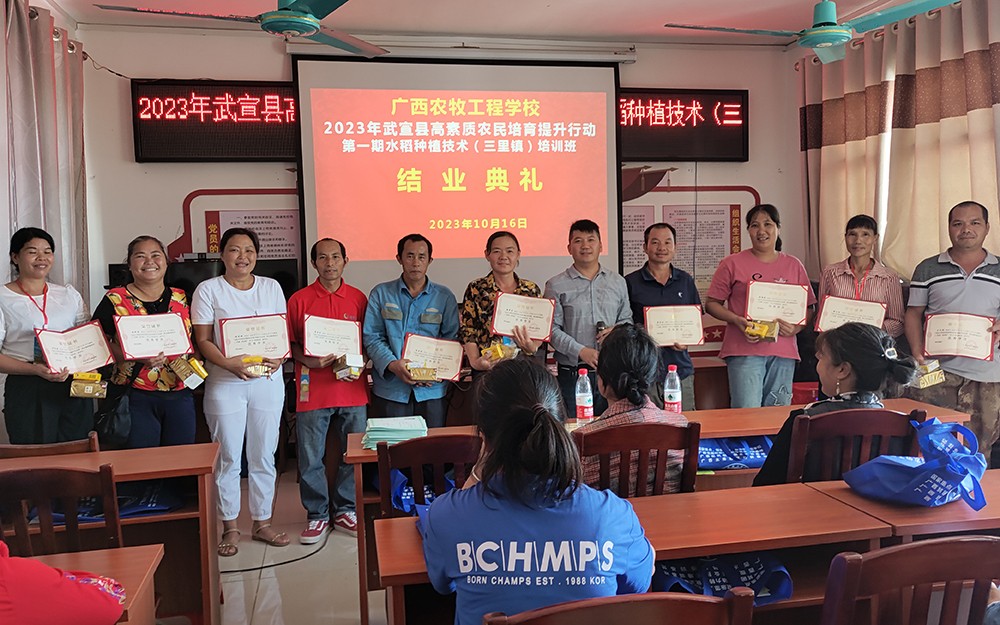 近日,为全面提升高素质农民生产技术技能,由我校承办的2023年武宣县第一期(水稻种植技术)培训班在三里镇五星村委会议室开班。来自五星村委沙安村水稻种植者共57名学员参加了此次培训。