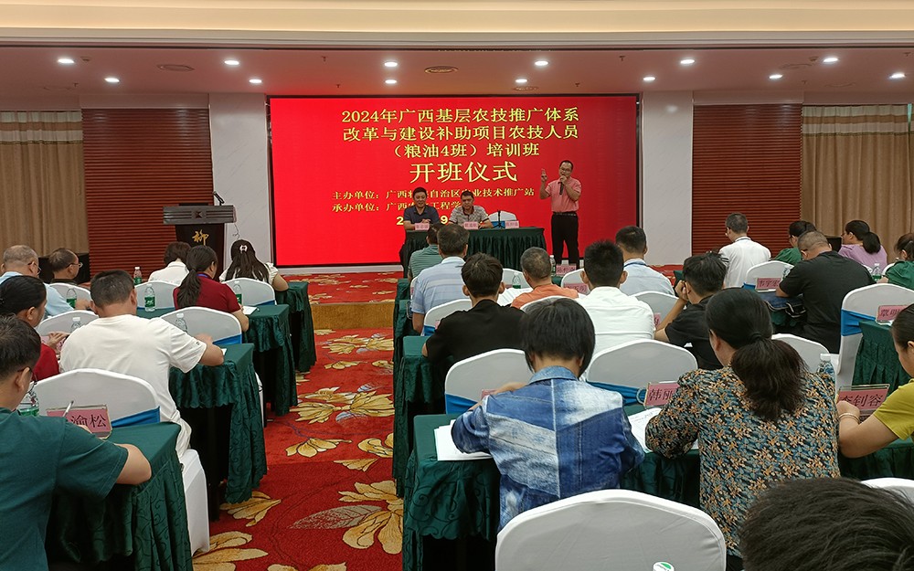 2024年9月22日至2024年9月28日,由自治区农业推广站主办、我校承办的2024年广西基层农技推广体系改革与建设补助项目农技人员(粮油四班)培训班在柳州宾馆成功举办,来自全区各地的92位农技人员参加了本次培训。
