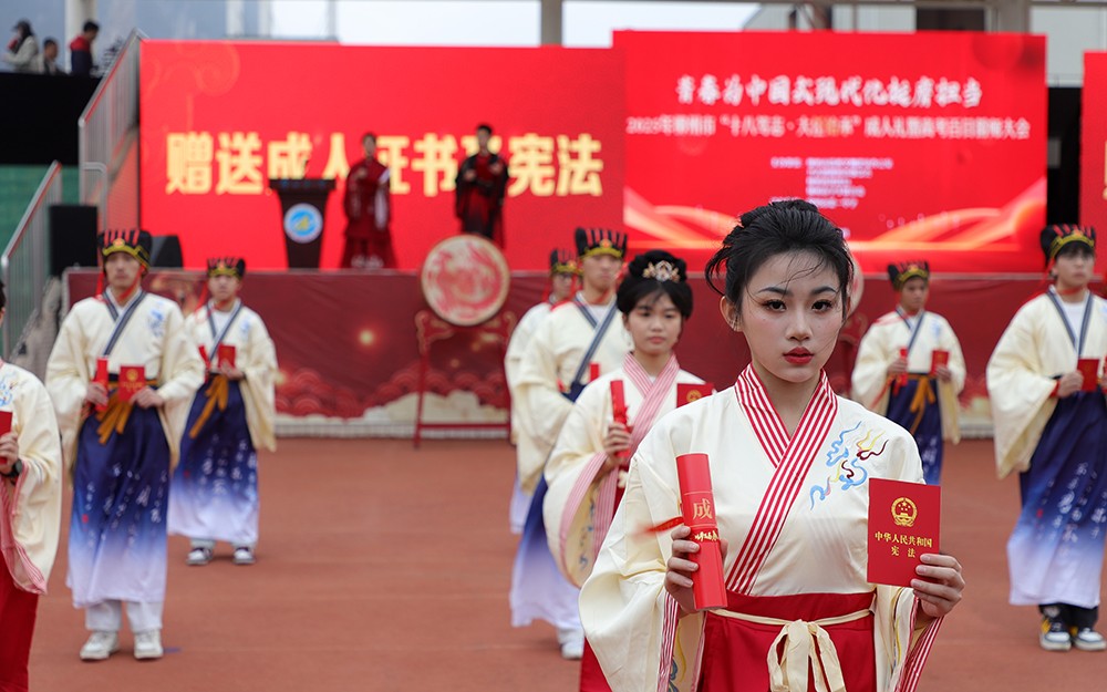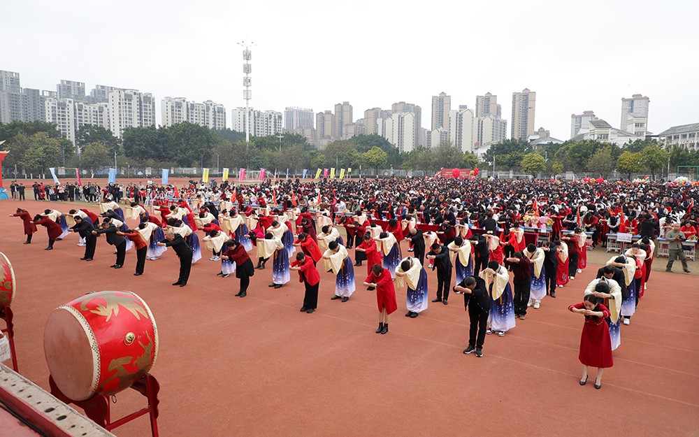 活动在雄壮的国歌声中开始,成人礼上,全体人员向孔子行拜师礼,家长为学生加冠、加笄,学生以三拜之礼感恩父母和老师。参会领导向学生赠送宪法及成人证书,赋予青年责任与使命。高考百日誓师大会将现场氛围推向高潮。家长的深情寄语、教师代表的专业指导和鼓励,以及全体教师的宣誓,给予学生强大支持。活动尾声,学生放飞承载梦想的气球,共同迈向成人和成功的大门。