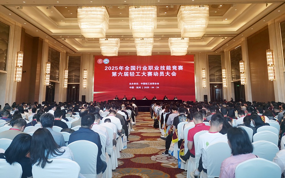 在深入贯彻习近平总书记关于技能人才工作重要指示,全面落实人才强国与创新驱动发展战略的时代浪潮中,轻工行业技能人才培育工作迎来新的里程碑。 4 月 24 日上午,2025年全国行业职业技能竞赛第六届轻工大赛动员大会在杭州举行,此次大会以推动轻工技能深度交流、打造高品质竞赛平台、赋能行业创新发展为目标,吸引了众多行业精英齐聚一堂,我校王彩云、李秋萍老师参会。