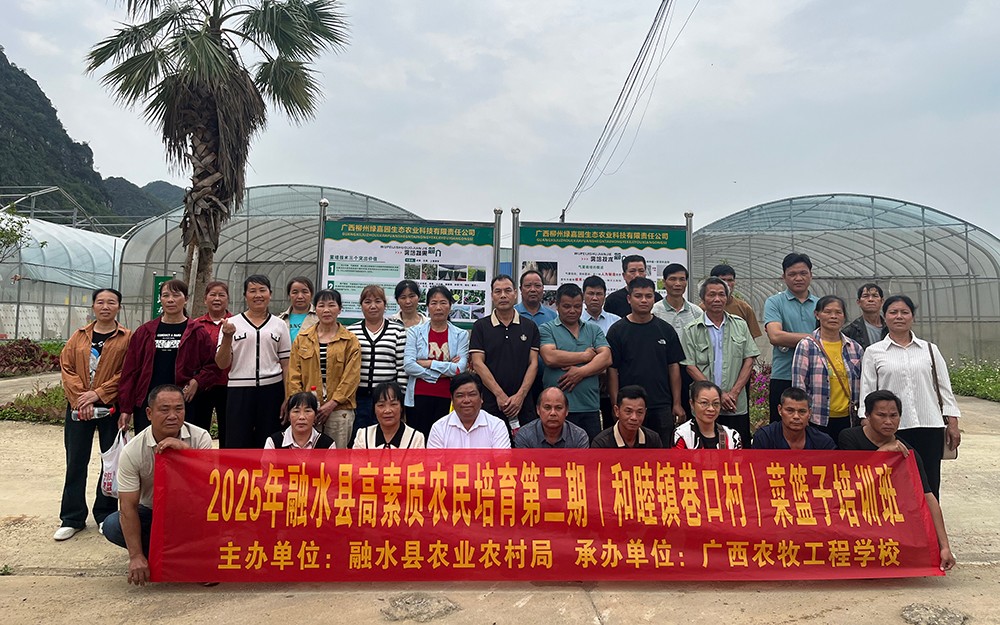 4月23日,我校承办融水苗族自治县高素质农民培育第三期(和睦镇巷口村)菜篮子培训班正式开班。本次培训班为期6天,聚焦蔬菜种植领域,吸引了50位学员踊跃参与,旨在提升农民蔬菜种植技能,推动当地蔬菜产业高质量发展。