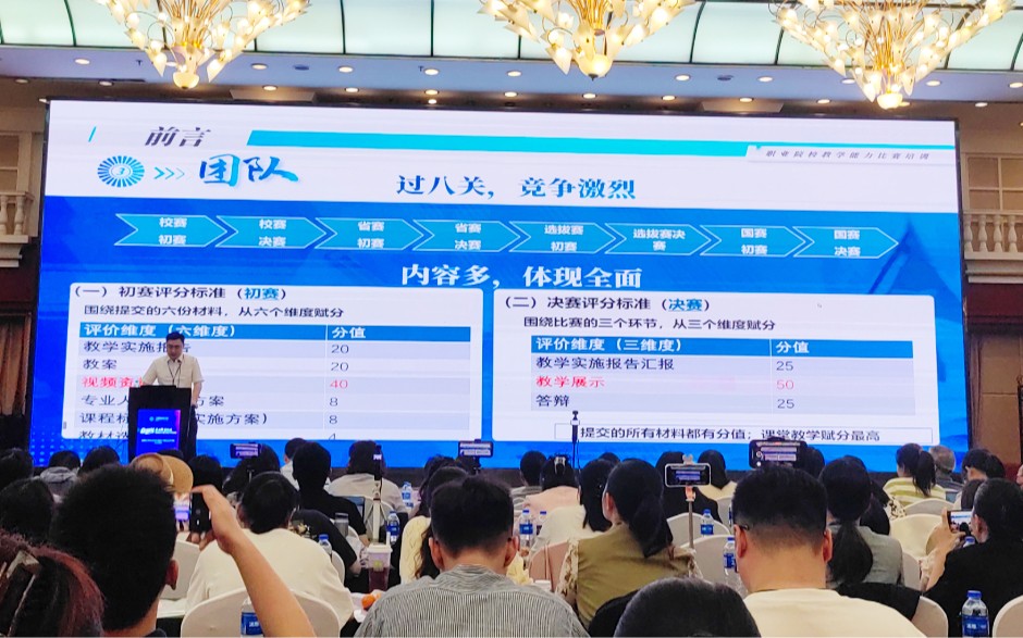 在为期两天的培训中,我校参训教师以国赛标准为镜,细致审视现有备赛材料规范性;从获奖案例中汲取智慧,在课程重构、教学实施等方面获得新思路;聚焦课堂呈现、实施报告撰写等关键环节,探索出打通备赛堵点的有效方法。培训结束后,他们将带着所学所悟,以饱满的热情和坚定的信心,全身心投入到紧张而充实的备赛工作中,向着大赛目标奋力冲刺。