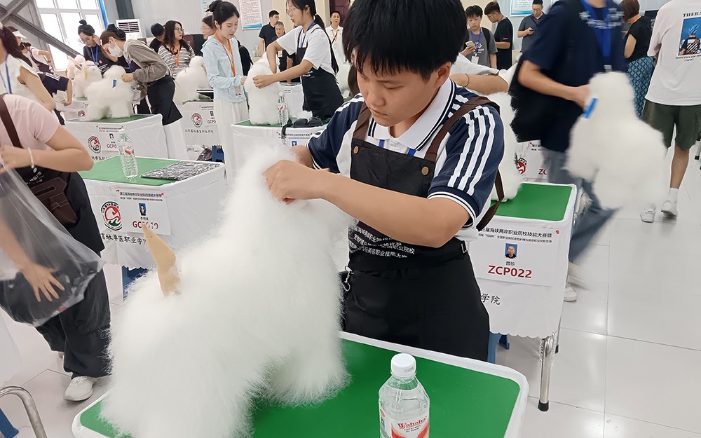 本次“校园杯”赛事规格高、竞争激烈,不仅考核选手的基础美容技术(如拉毛、修剪、造型),更着重考察其对标准的理解、创意设计能力以及职业素养。面对压力与挑战,参赛选手沉着冷静,凭借扎实的理论功底和娴熟的操作技能,在比赛现场全神贯注,以手中工具为画笔,在萌宠模特身上精心雕琢,将课堂所学转化为一件件富有创意、符合标准的“活的艺术品”,充分展现了农牧学子追求卓越、精益求精的工匠精神。参赛选手经过近三个小时的“战斗”,最终不负众望,获得一等奖1项、二等奖1项、三等奖1项的好成绩。
